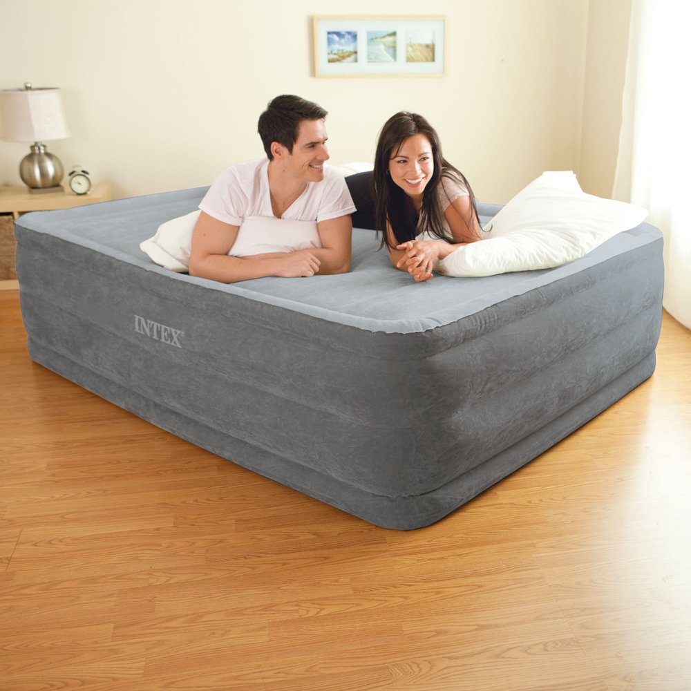 Inflates mattress in approximately 2 minutes to the desired firmness. Free delivery for many products! This bed from intex offers comfort, stability and support all rolled into one air mattress. We purchased this air mattress and have written this review to help you out. Intex dura beam elevated air bed queen comfort plush inflatable mattress pump. Its a double bed for 2 people. For example, the queen size, 18 elevated. Its 33cm in height and very durable. Top 7 intex airbed reviews. Unique edge construction for more sleeping space and mattress stability. The innovative design also prevents your pillow from sliding off. Plush dual air pillowtop system. It is made of very durable gray material.